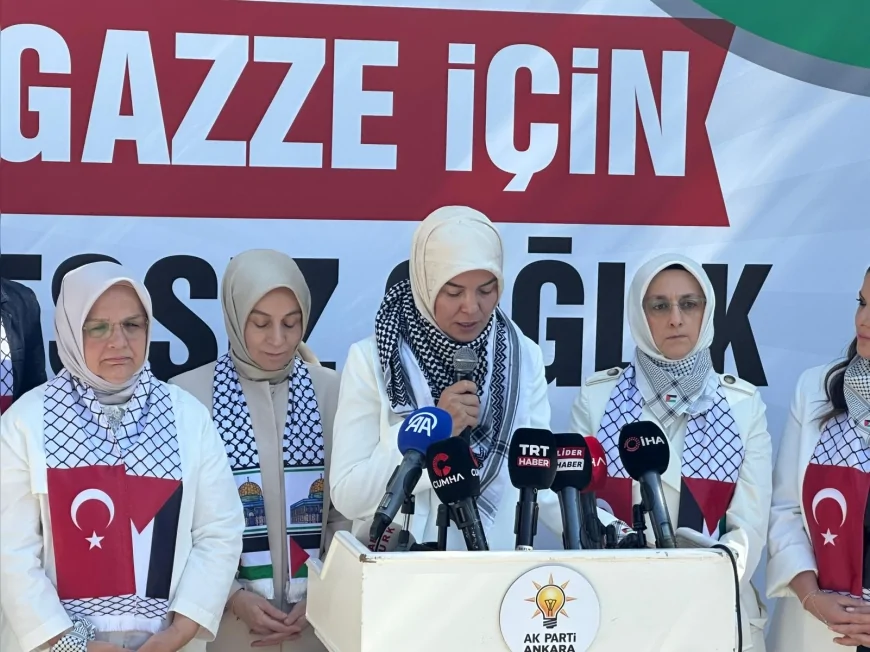 AK Parti Genel Merkez Kadın Kolları Başkanlığının koordinasyonunda, 81 ilde eş zamanlı düzenlenen “Gazze İçin Sessiz Çığlık” etkinliğinin Ankara ayağı, İsrail Büyükelçiliği konutu önünde gerçekleştirildi. AK Parti Ankara İl Kadın Kolları Başkanı Aysel Koçak Akgül’ün öncülüğünde bir araya gelen kadınlar, Gazze’de yaşanan sivil kayıplara dikkat çekti. Beyaz kıyafetler ve kefiyelerle oluşturulan sessiz zincirde, “Barış kadınla mümkündür” mesajı verildi. Etkinlikte milletvekilleri, belediye başkanları, sivil toplum temsilcileri ve Filistinli katılımcılar yer aldı.
