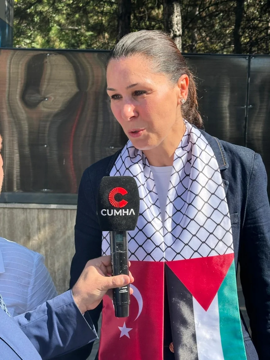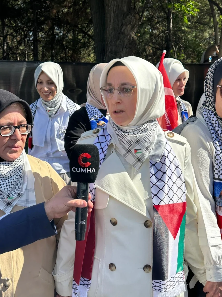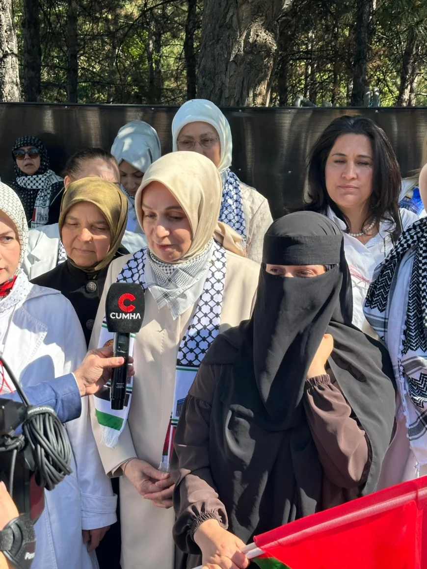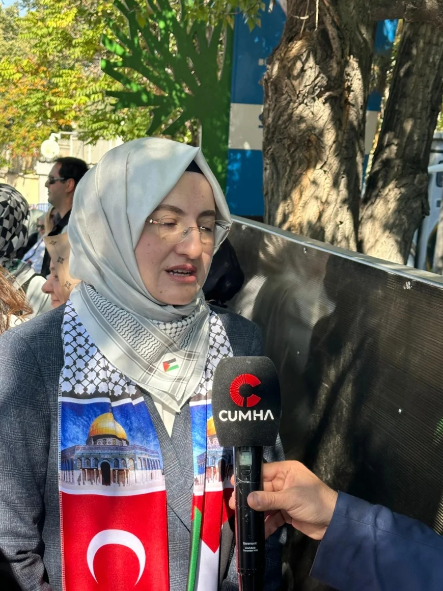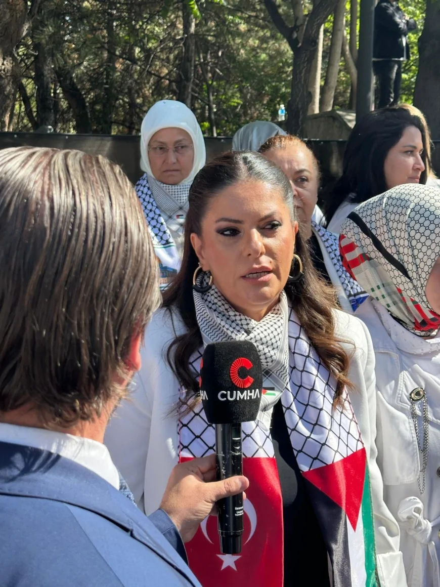 “Bir soykırımın bitmesi için kadınlar olarak el ele verdik. Bugün 81 ilde aynı anda meydanlardayız. Filistinli kardeşlerimizin sesi olmak istiyoruz. Türkiye, mazlumların sığınağıdır. Filistinli bir anne bugün burada bizimleydi, Türkiye’ye ve Cumhurbaşkanımıza teşekkür etti.”