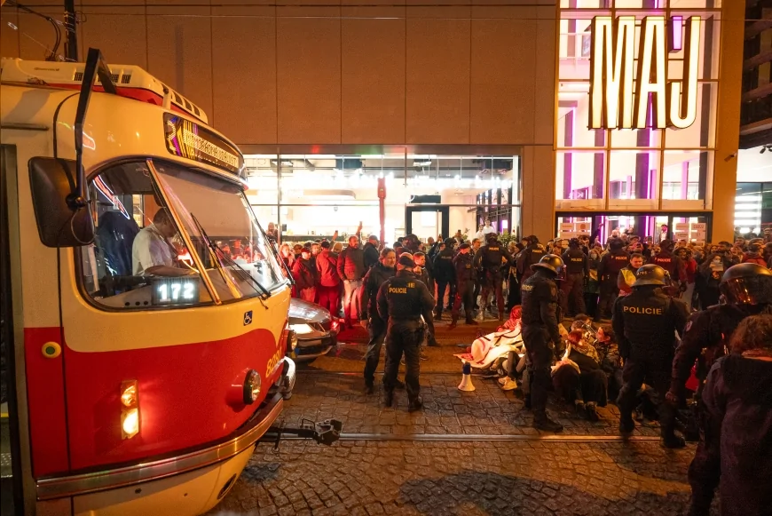 Çekya’nın başkenti Prag’da yaklaşık 30 kişilik Filistin yanlısı grup, Spálená Caddesi’nde tramvay hattını oturarak trafiğe kapattı. Polis çağrılara uymayan 17 göstericiyi gözaltına aldı. Turistlerin de destek verdiği protesto nedeniyle tramvay seferleri iki saat durdu.