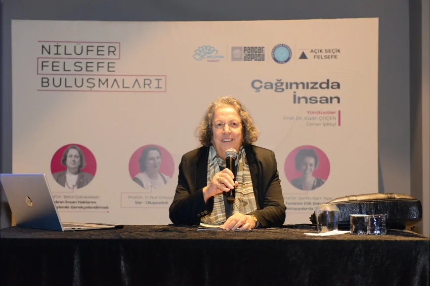Nilüfer Belediyesi’nin “Çağımızda İnsan” temalı Felsefe Buluşmaları, Prof. Dr. Betül Çotuksöken’in “Kadının İnsan Haklarını Felsefi Söylemle Gerekçelendirmek” başlıklı söyleşisiyle başladı. Çotuksöken, erkek merkezli toplum yapısının kadın haklarını sınırlandırdığını vurgulayarak, toplumsal cinsiyet kalıplarının eğitimle aşılabileceğini söyledi.