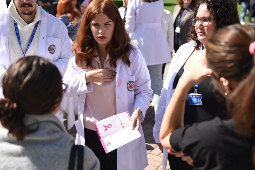 Etkinlikte, Kanserle Savaş Uygulama ve Araştırma Merkezi Müdürü Prof. Dr. Emine Serra Kamer ile tıp fakültesi öğrencileri, katılımcılara erken tanının meme kanseriyle mücadeledeki önemini anlattı. Öğrencilere, kendi kendine meme muayenesi ve düzenli doktor kontrollerinin nasıl yapılacağı konusunda bilgi verildi.